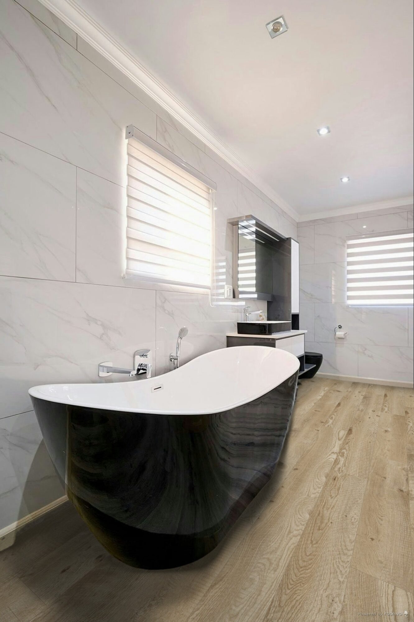 Sapphire Vinyl planks house a durable stone plastic composite core, making these tiles perfect for the wear and tear of daily living. Inspired by semi-precious stones, these rigid core vinyl boards are 100% waterproof and perfect for bathrooms and kitchens as they easily shrug off water without any residual damage.